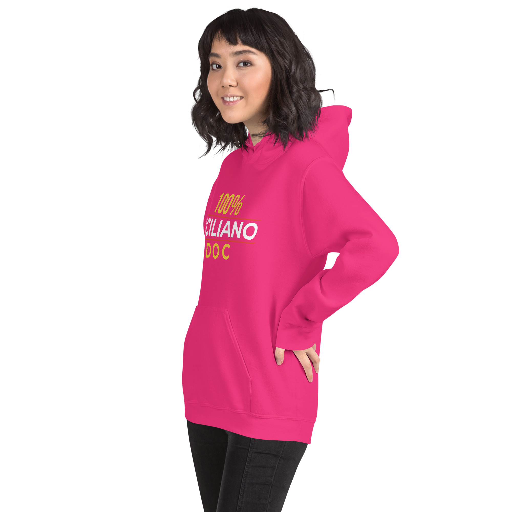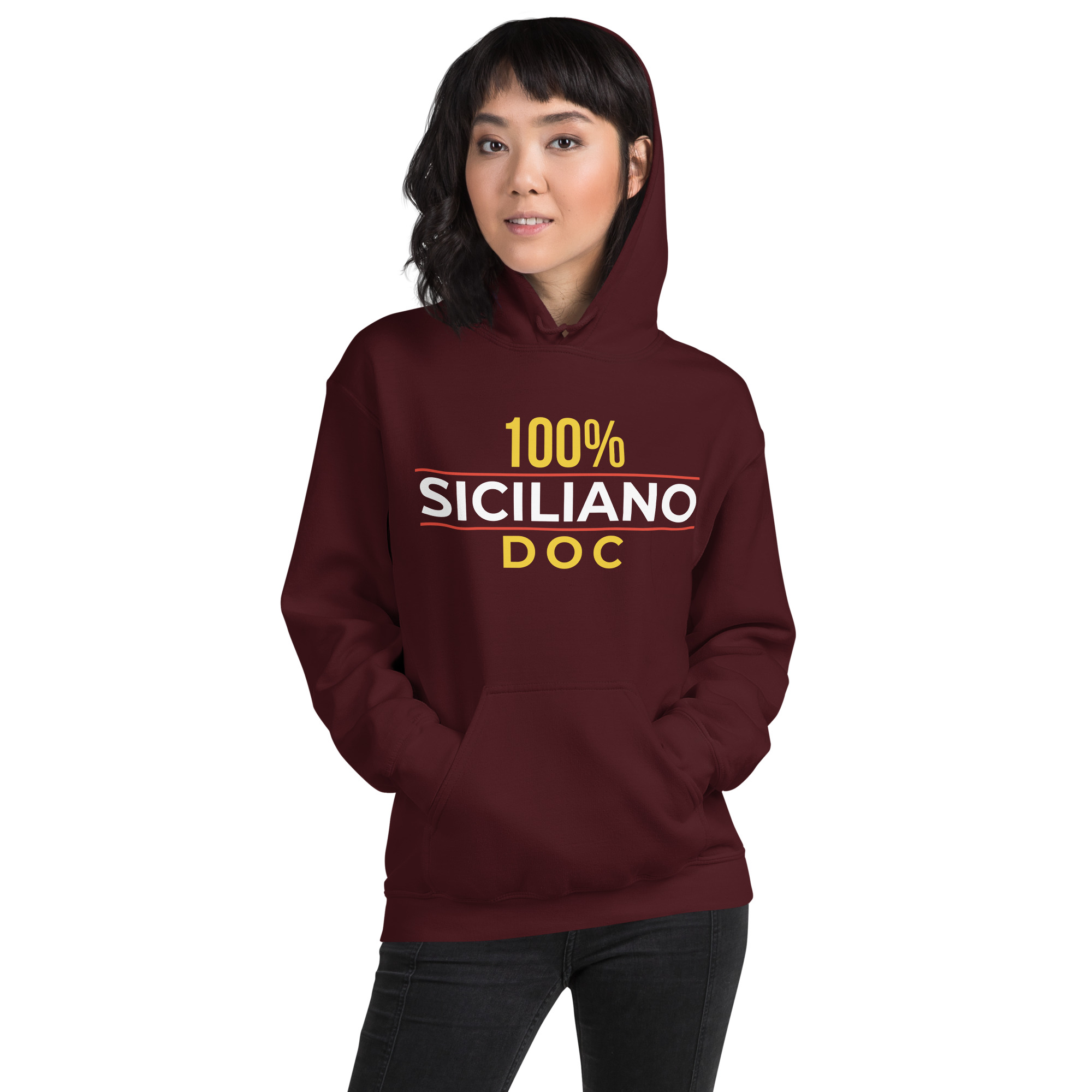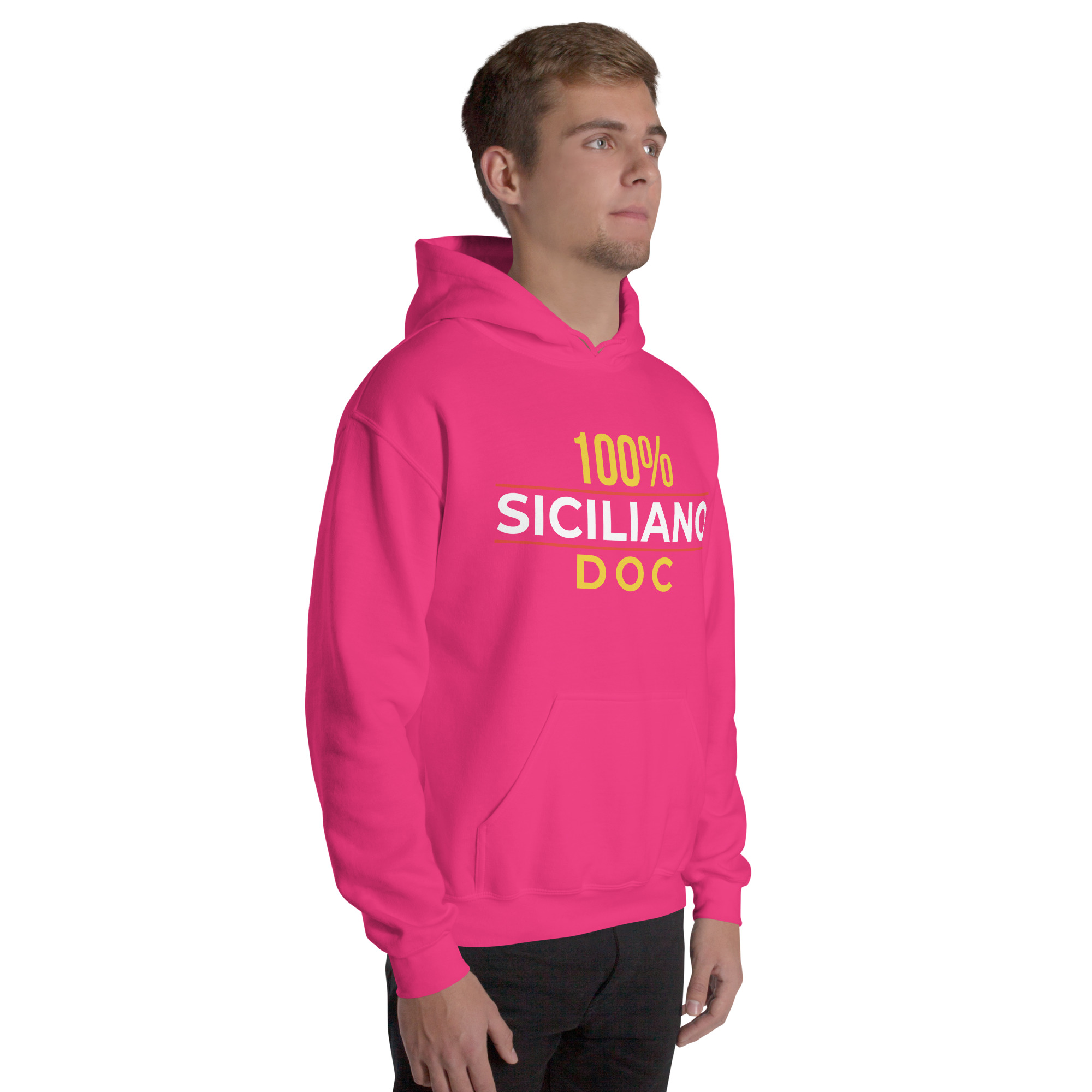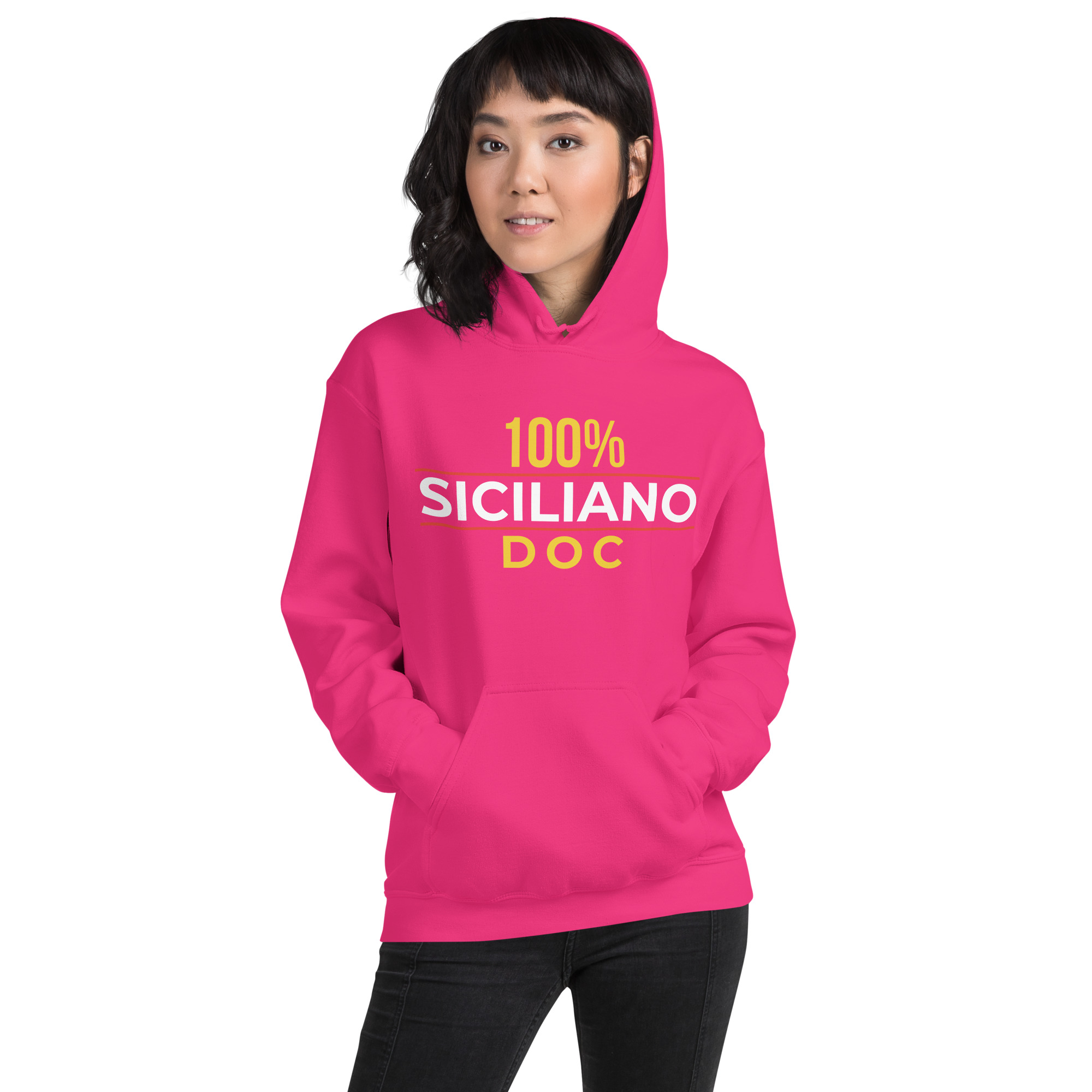 Il cappuccio ti ripara dal freddo del nord e dal vento dello Stretto, ma il messaggio resta sempre esposto. DOC come i prodotti della nostra terra: genuini, certificati, impossibili da imitare. Denominazione di Origine Controllata della tua persona: una garanzia che non scade mai.