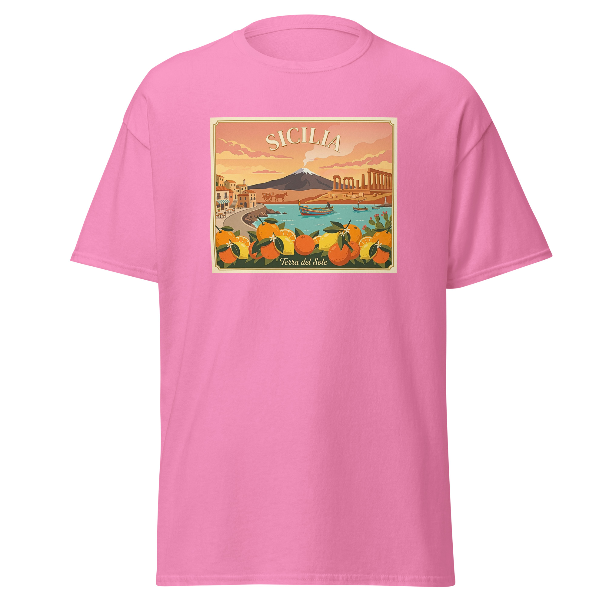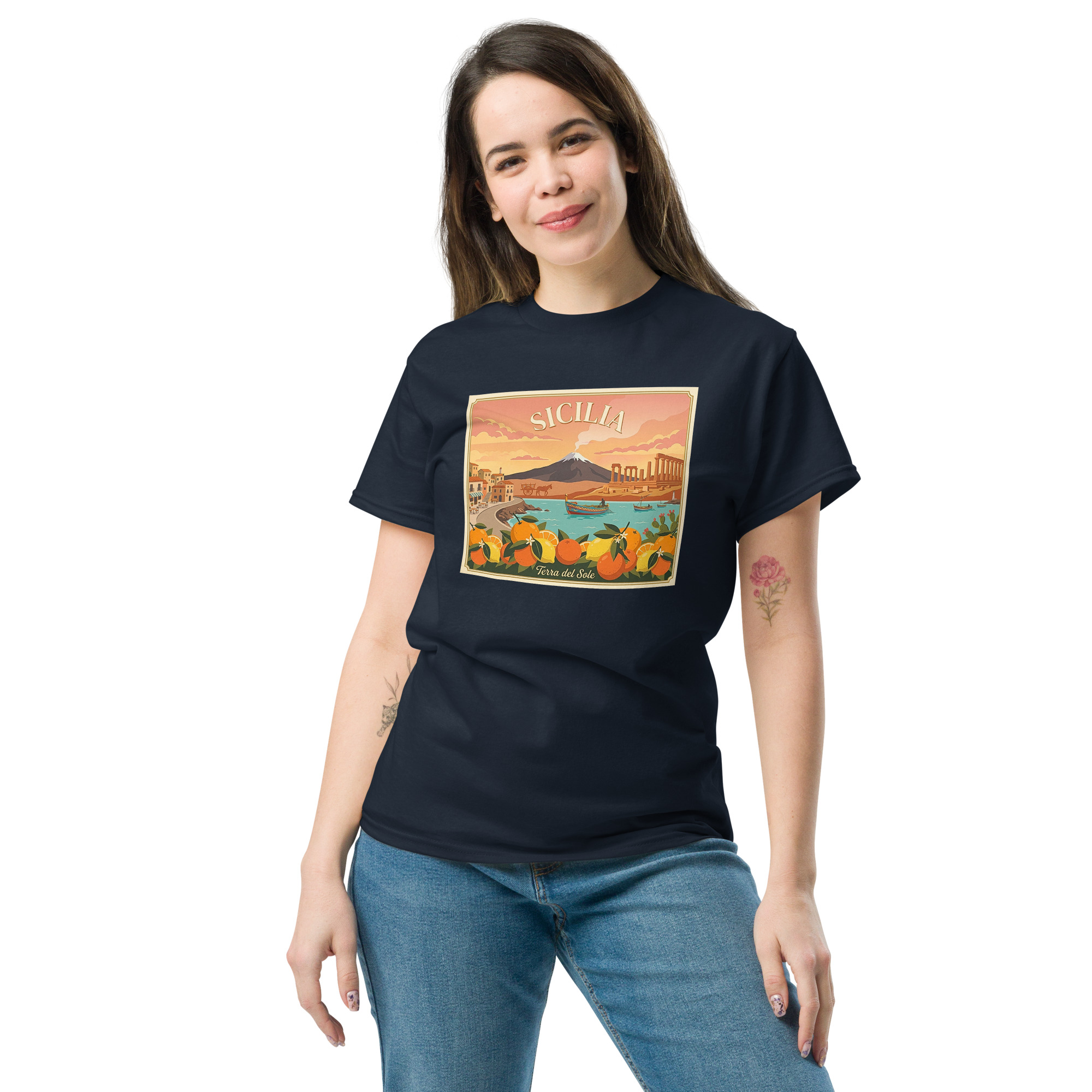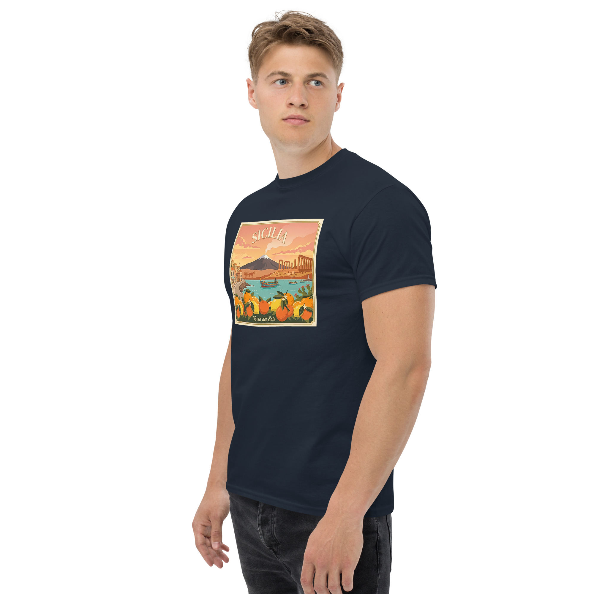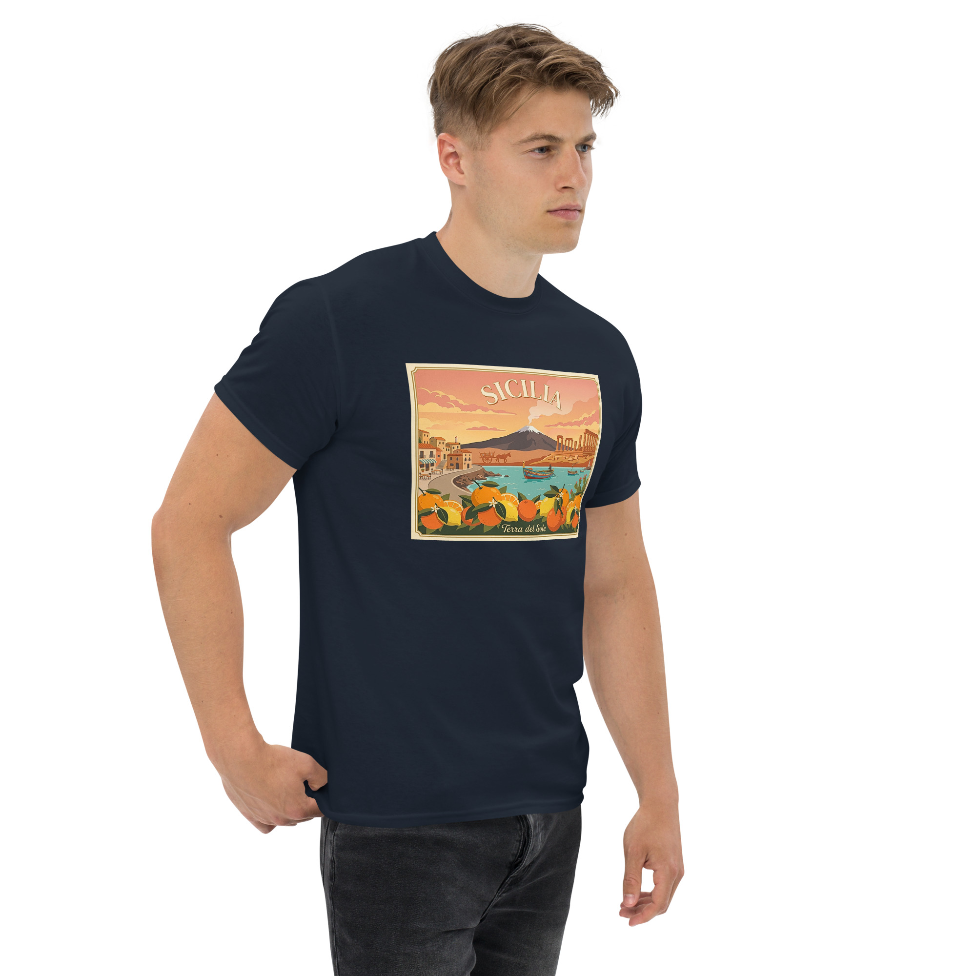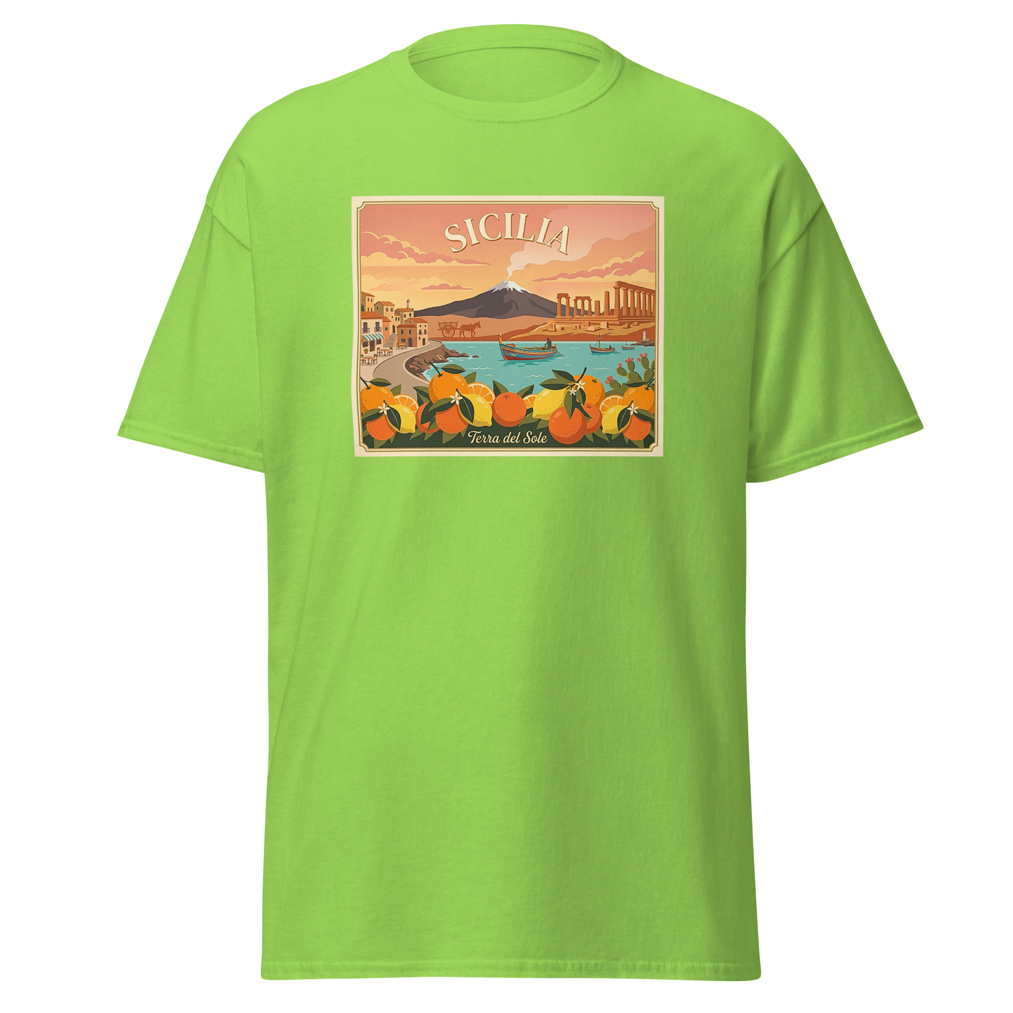 Nessun’altra isola al mondo ha tutto questo nello stesso posto. Il fuoco e l’acqua. L’antico e il selvaggio. Il profumo degli agrumi e il rombo del vulcano. La pietra dei templi e il sale del mare. Questa t-shirt porta addosso quella contraddizione magnifica che solo chi è siciliano può capire davvero.