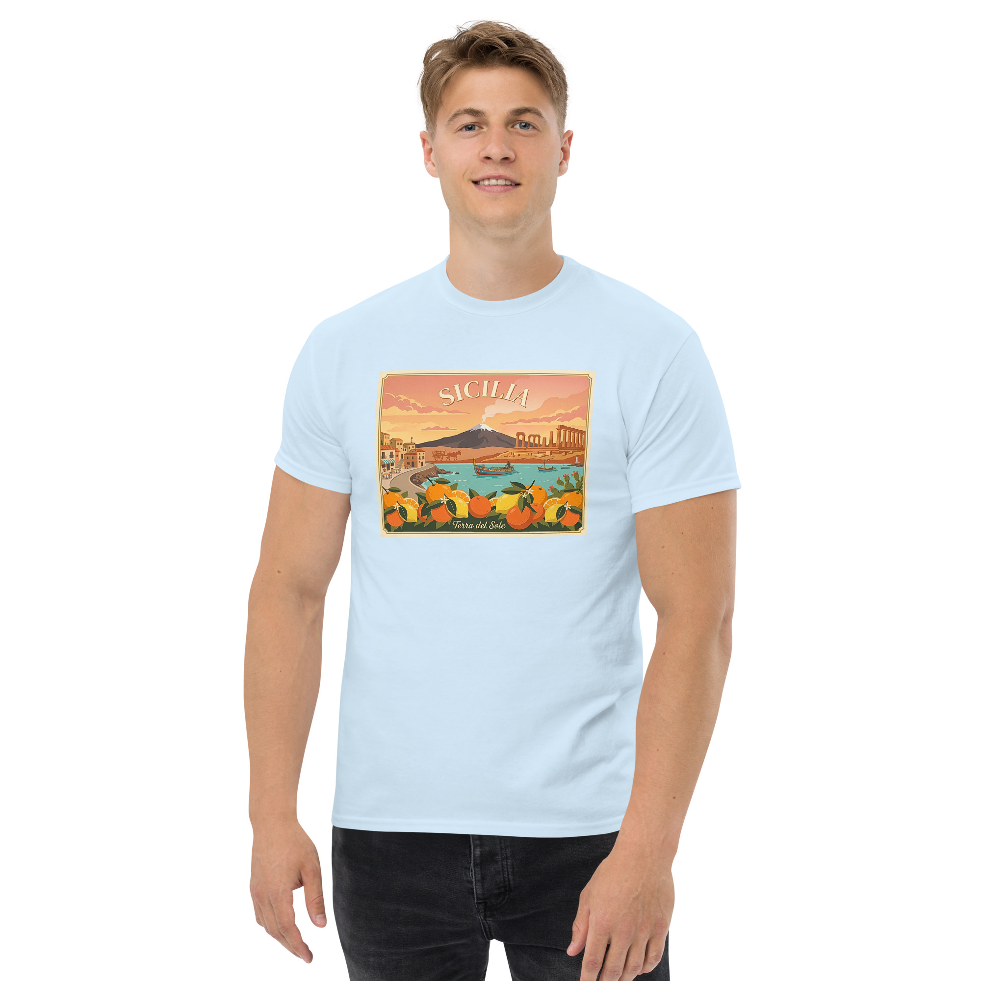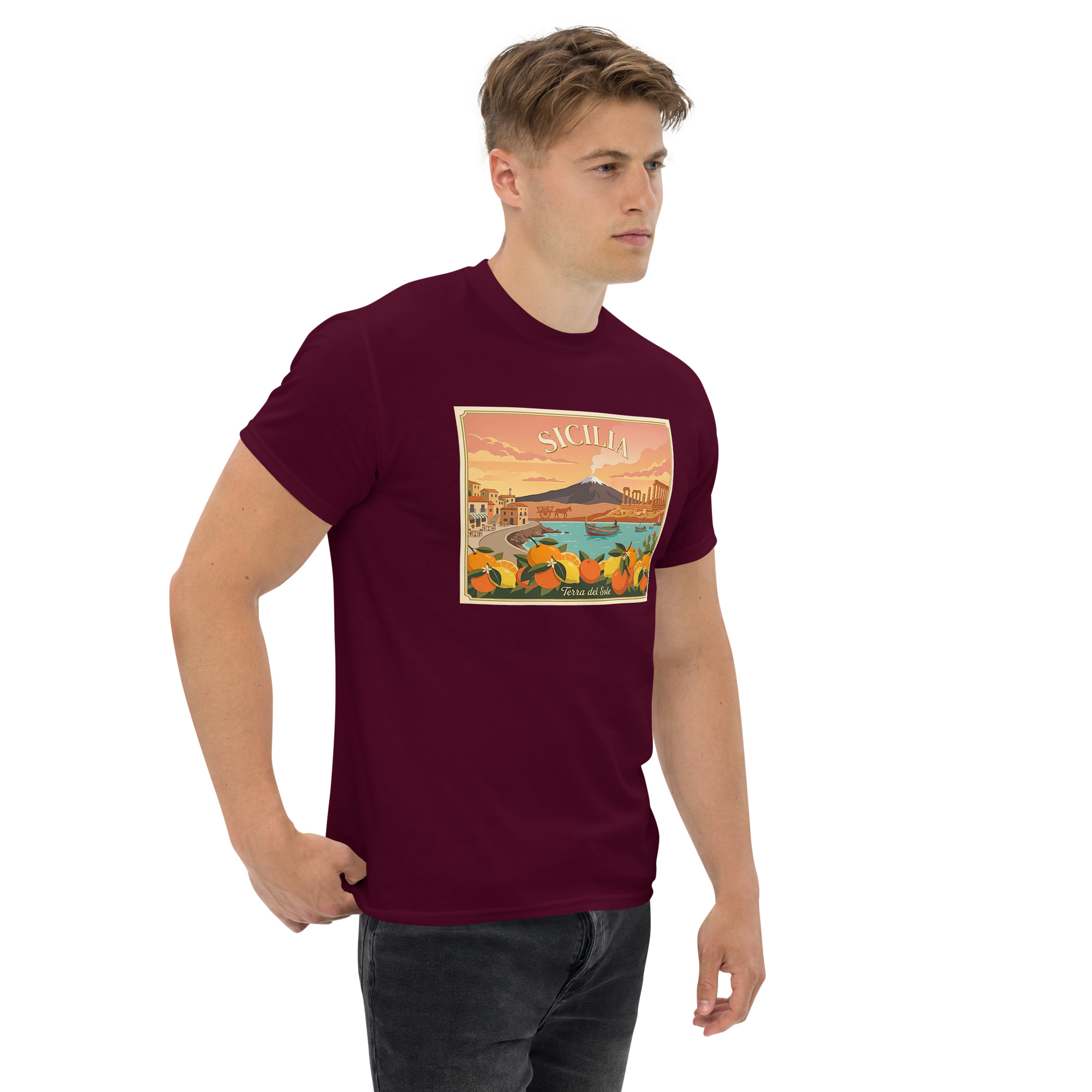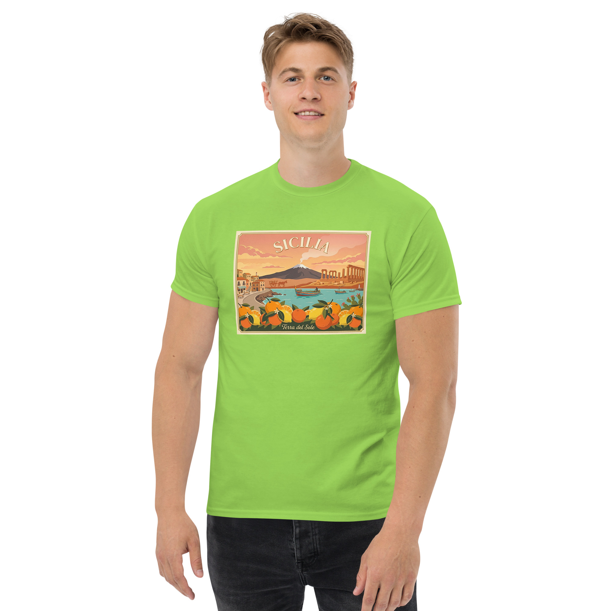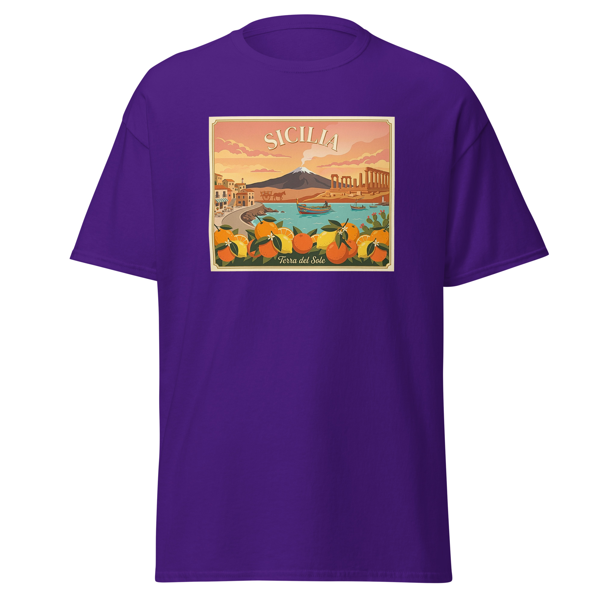 Nessun’altra isola al mondo ha tutto questo nello stesso posto. Il fuoco e l’acqua. L’antico e il selvaggio. Il profumo degli agrumi e il rombo del vulcano. La pietra dei templi e il sale del mare. Questa t-shirt porta addosso quella contraddizione magnifica che solo chi è siciliano può capire davvero.