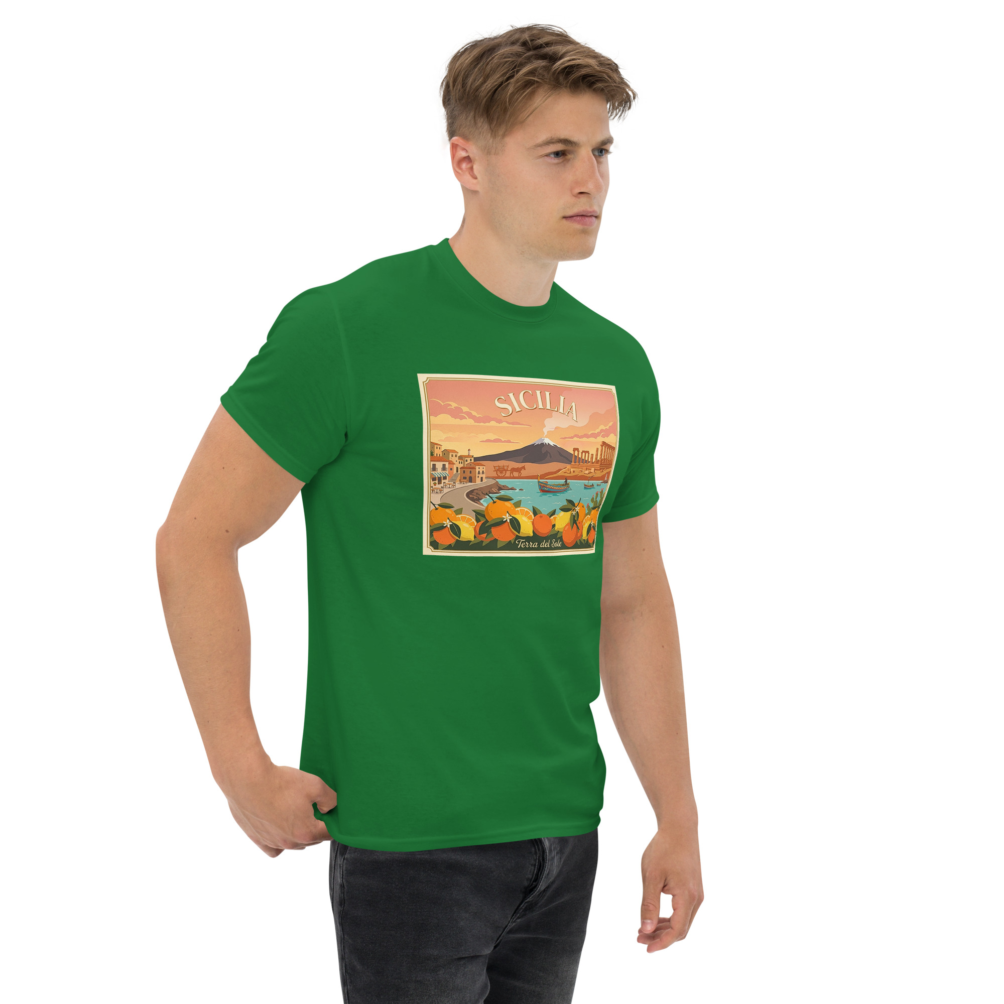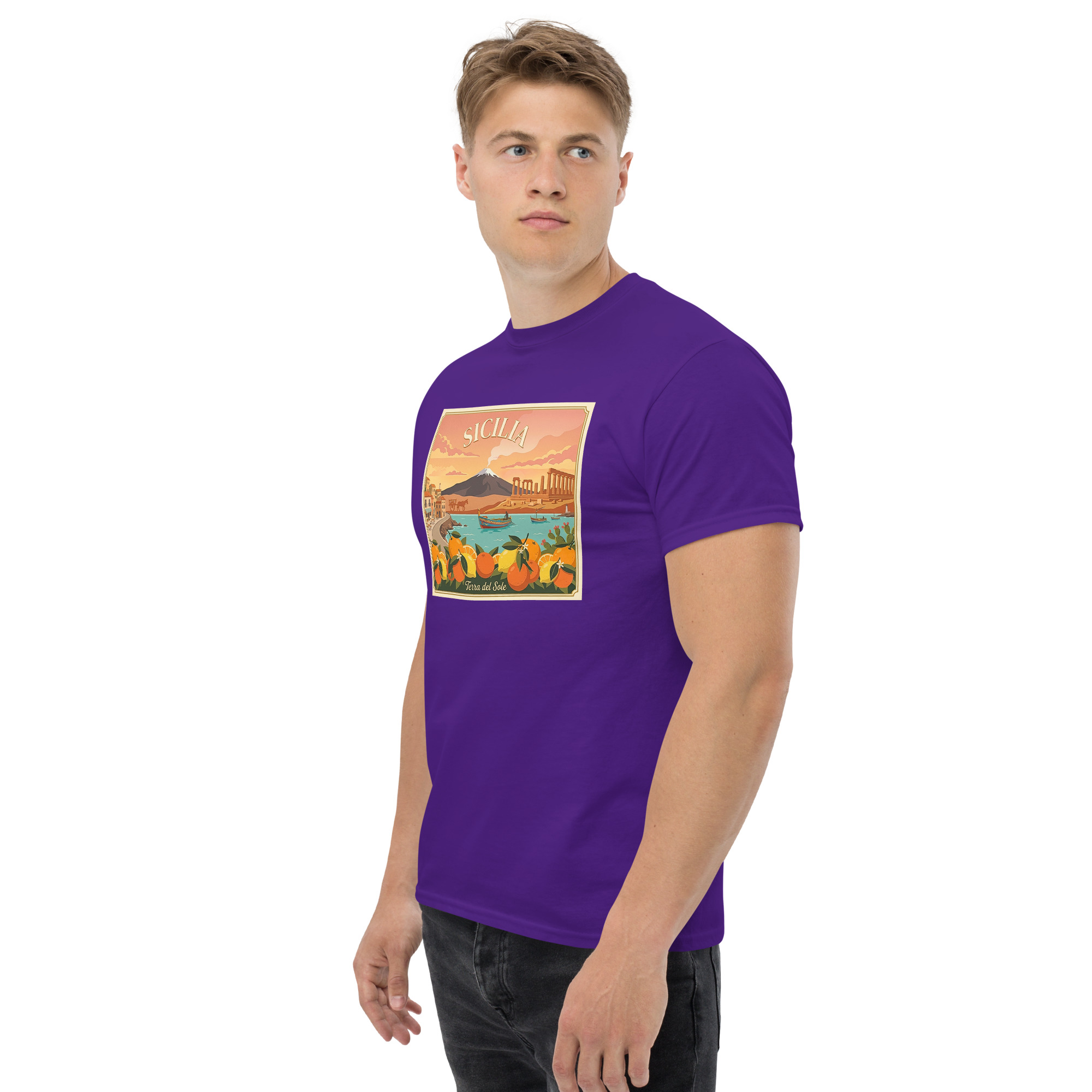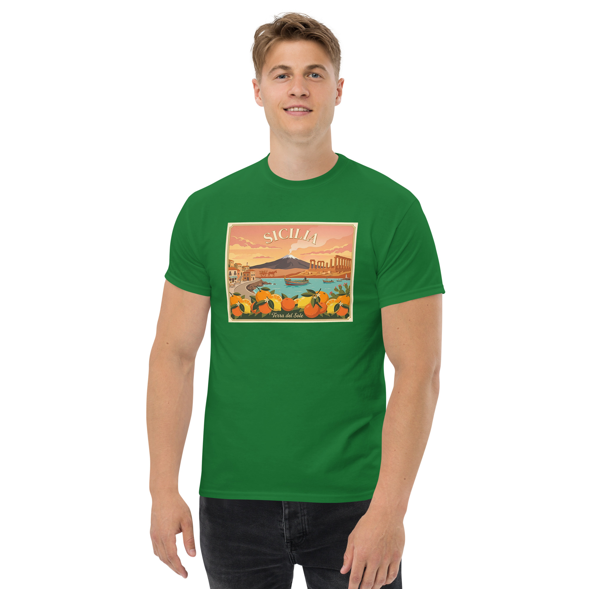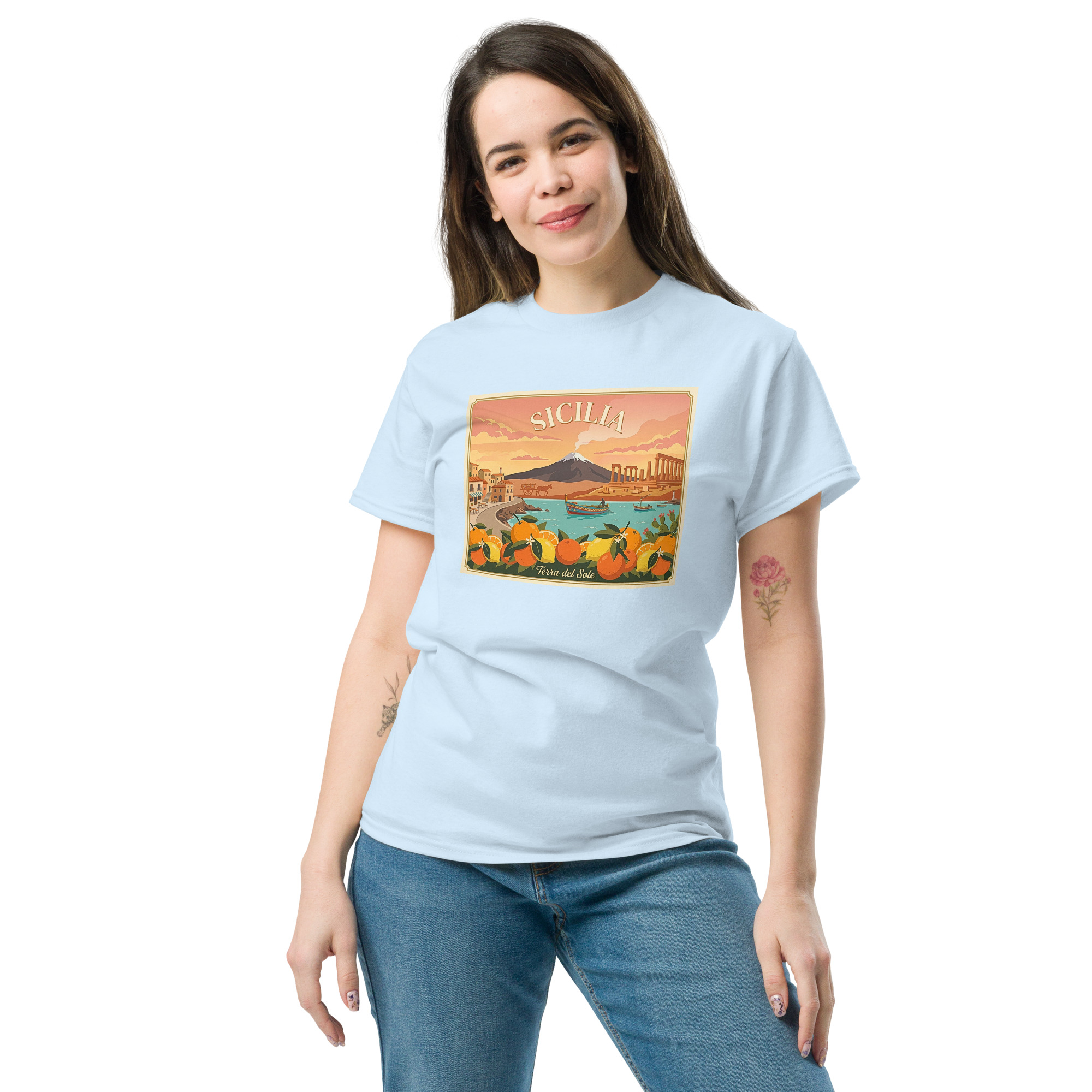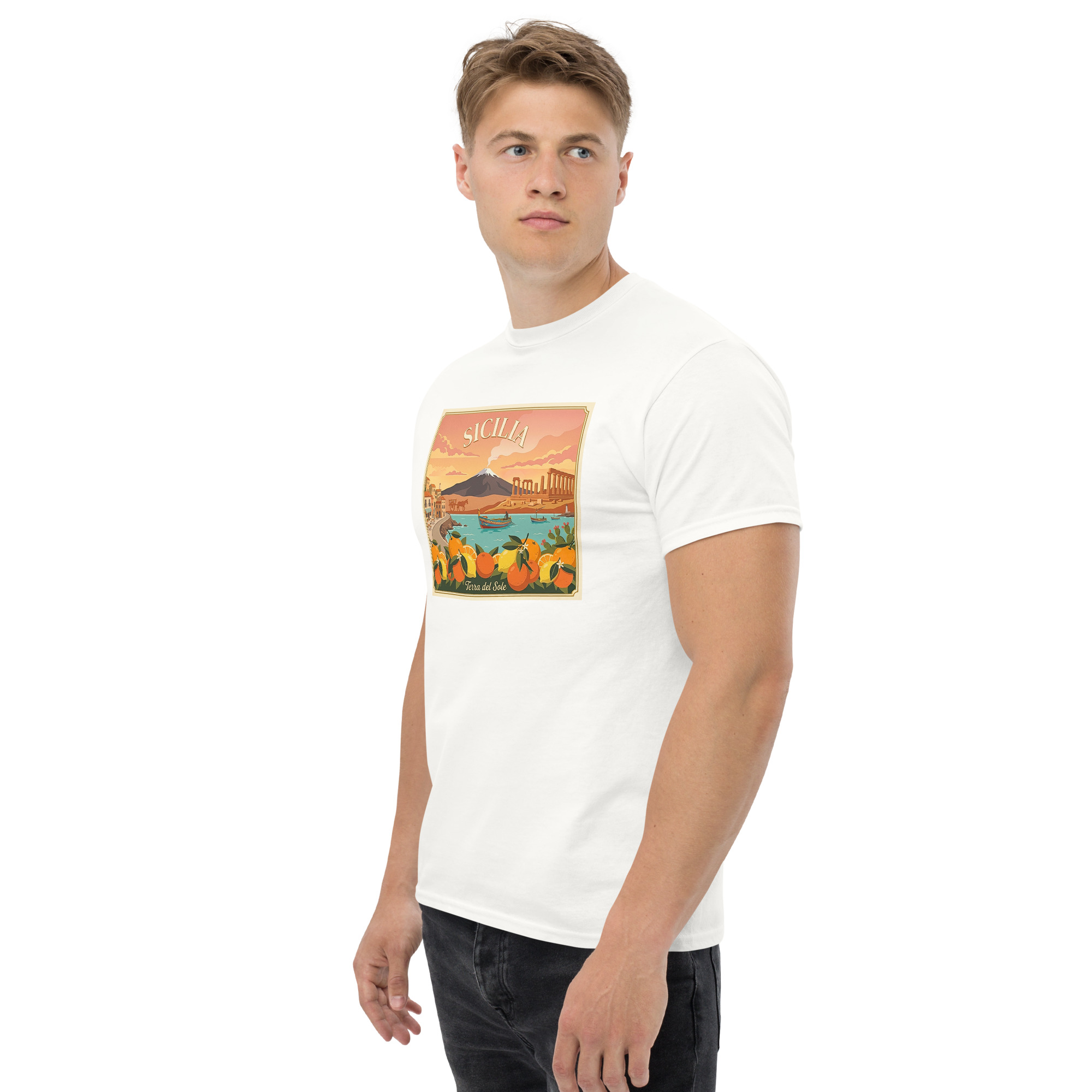 Nessun’altra isola al mondo ha tutto questo nello stesso posto. Il fuoco e l’acqua. L’antico e il selvaggio. Il profumo degli agrumi e il rombo del vulcano. La pietra dei templi e il sale del mare. Questa t-shirt porta addosso quella contraddizione magnifica che solo chi è siciliano può capire davvero.