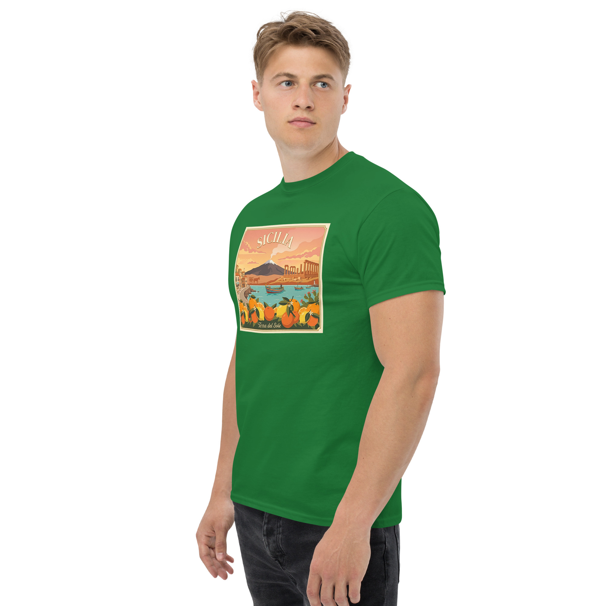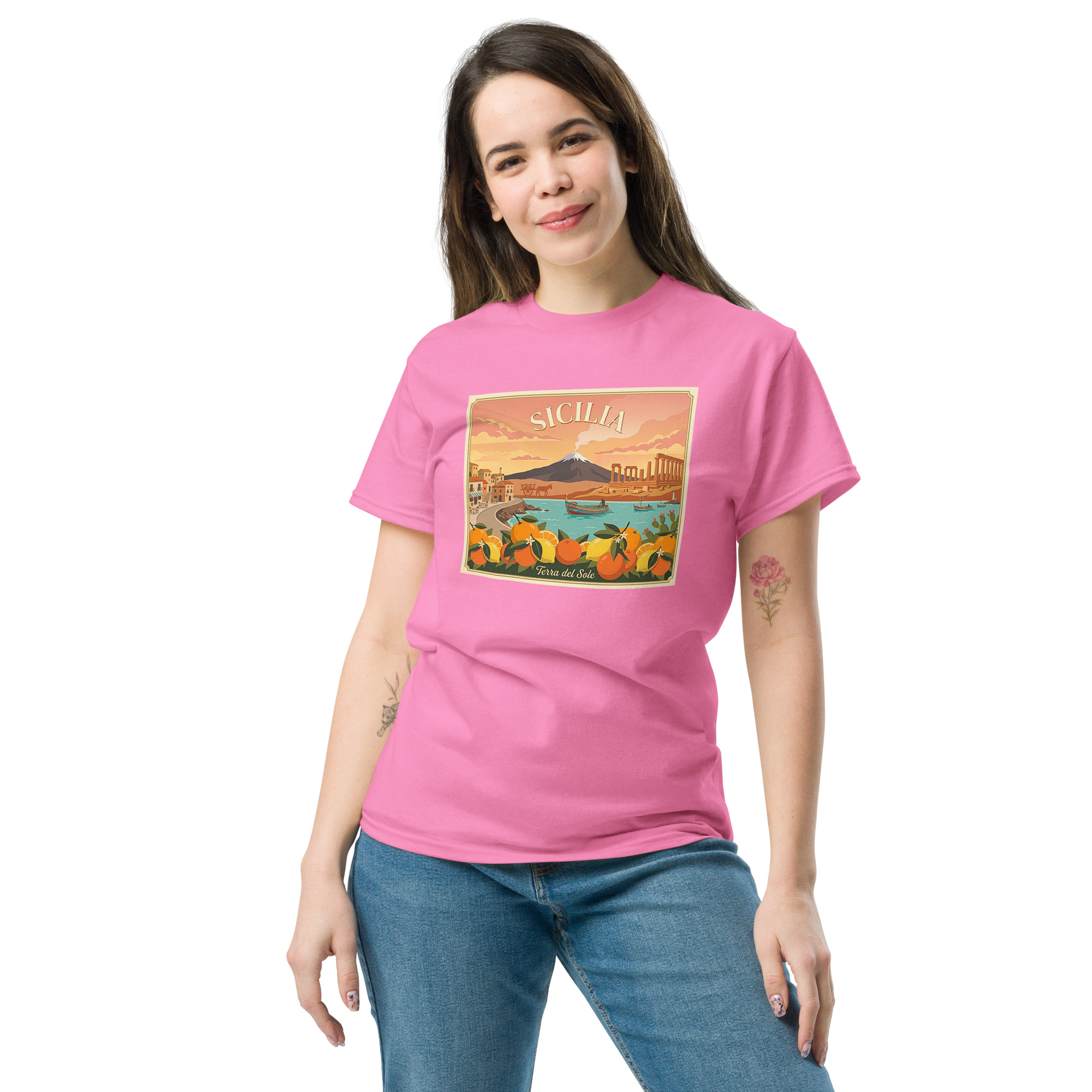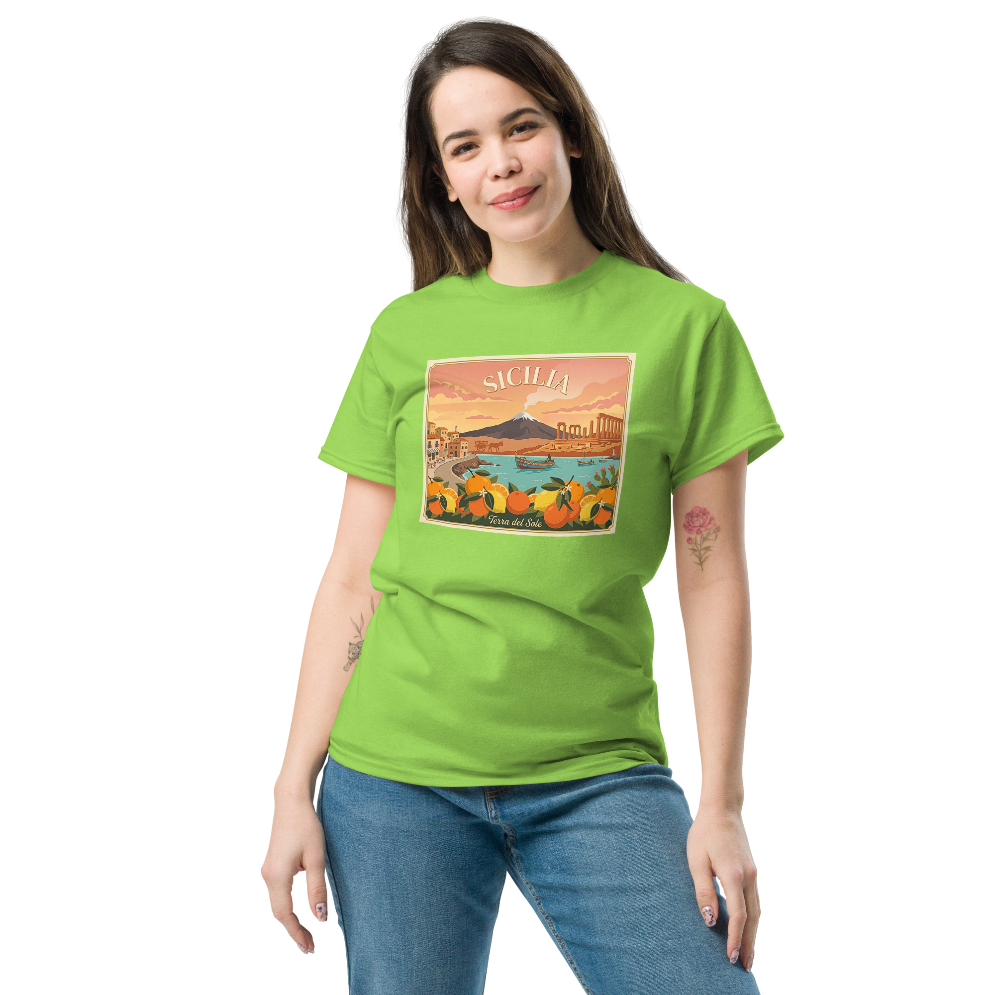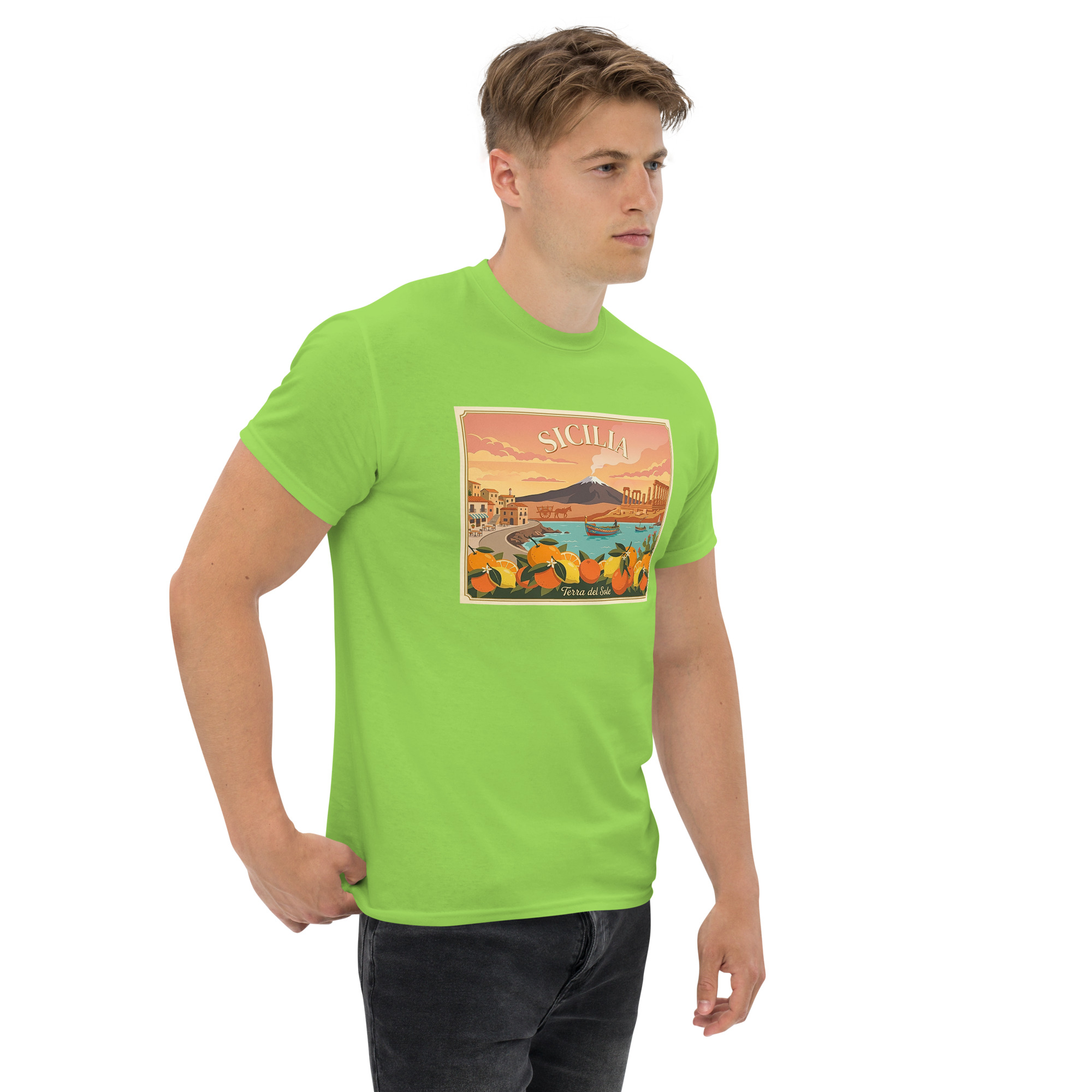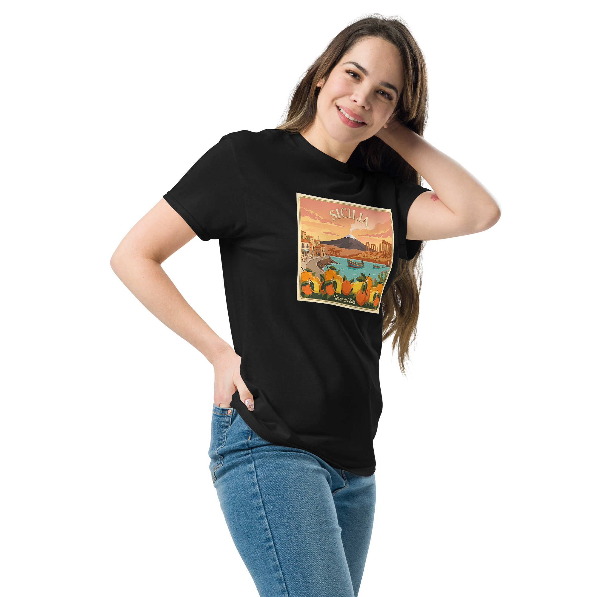 Nessun’altra isola al mondo ha tutto questo nello stesso posto. Il fuoco e l’acqua. L’antico e il selvaggio. Il profumo degli agrumi e il rombo del vulcano. La pietra dei templi e il sale del mare. Questa t-shirt porta addosso quella contraddizione magnifica che solo chi è siciliano può capire davvero.