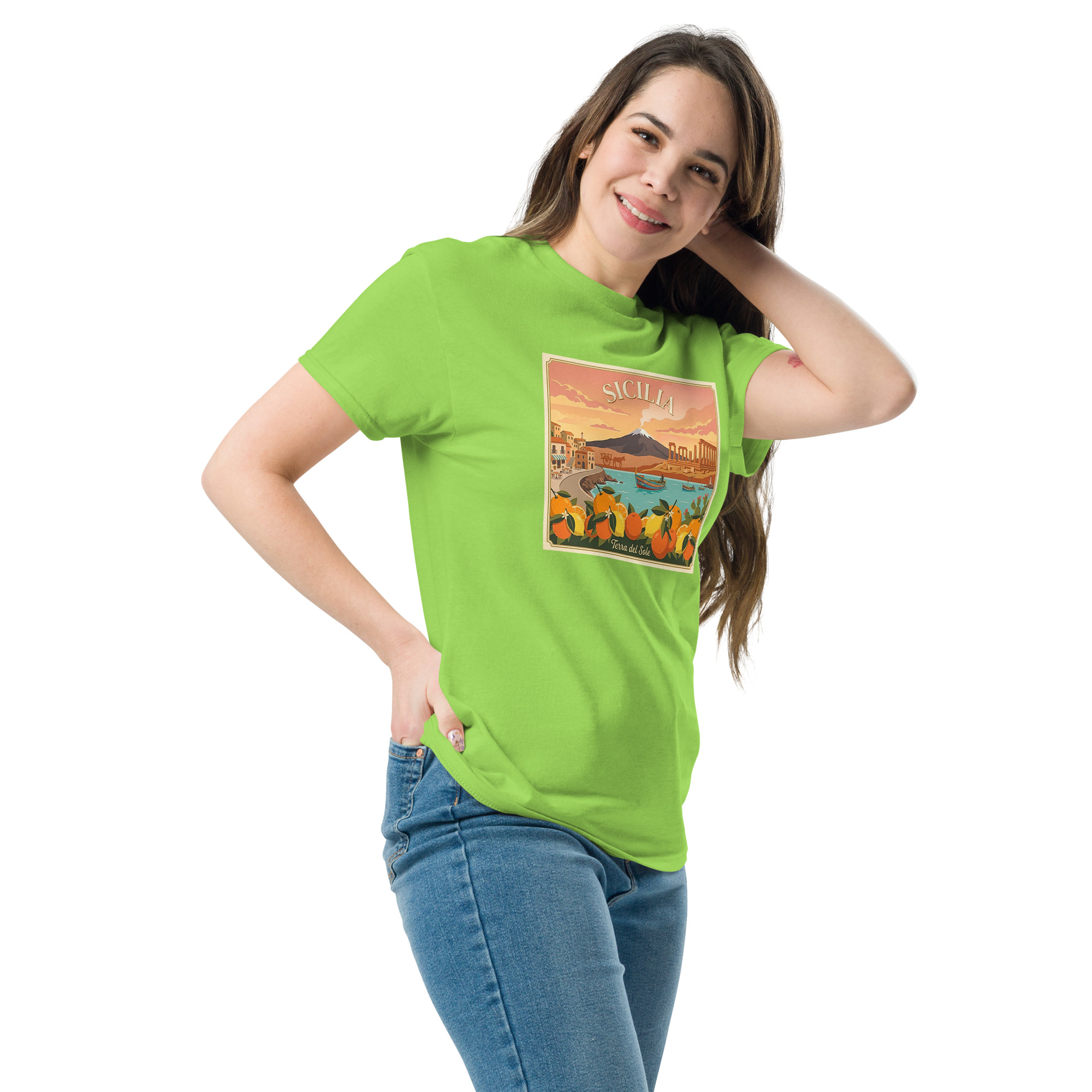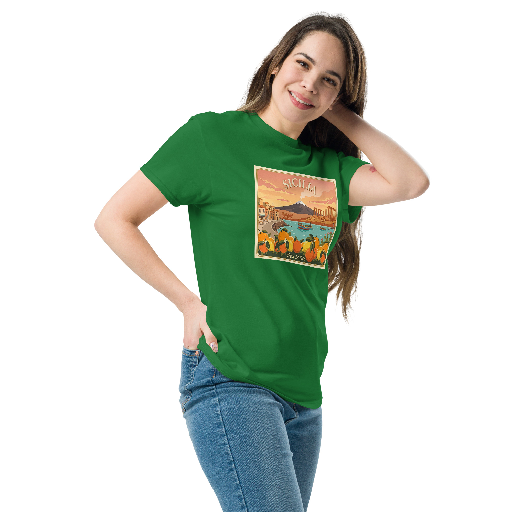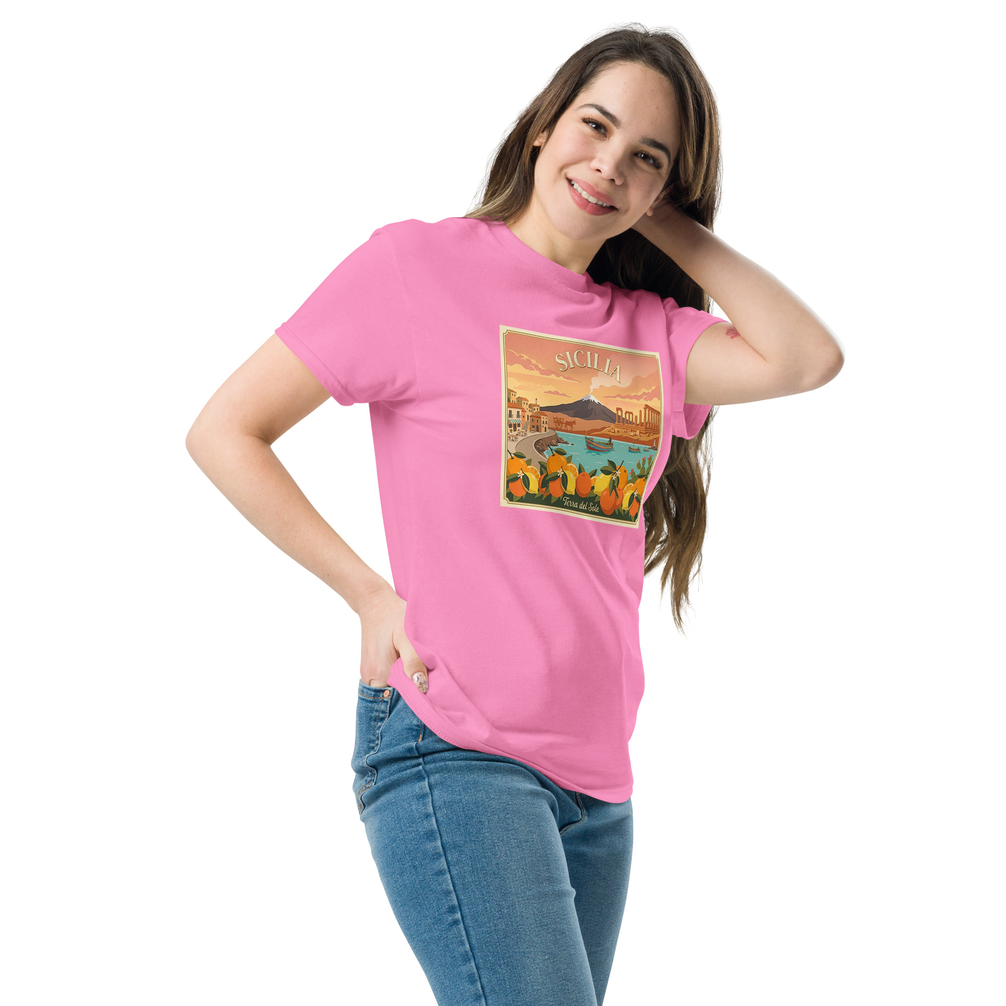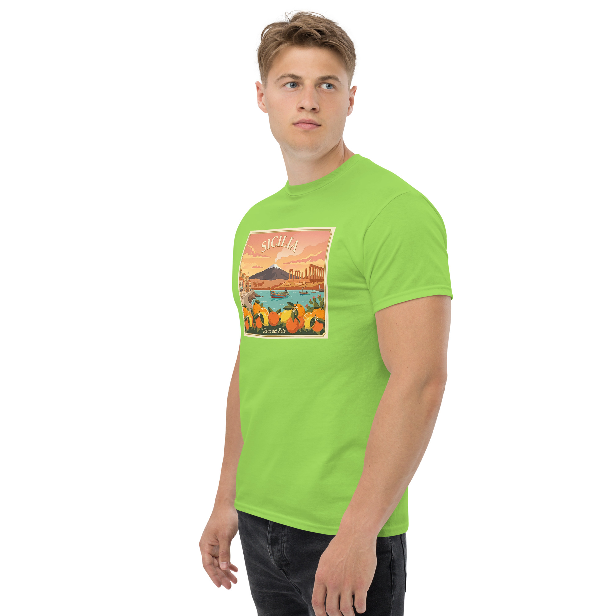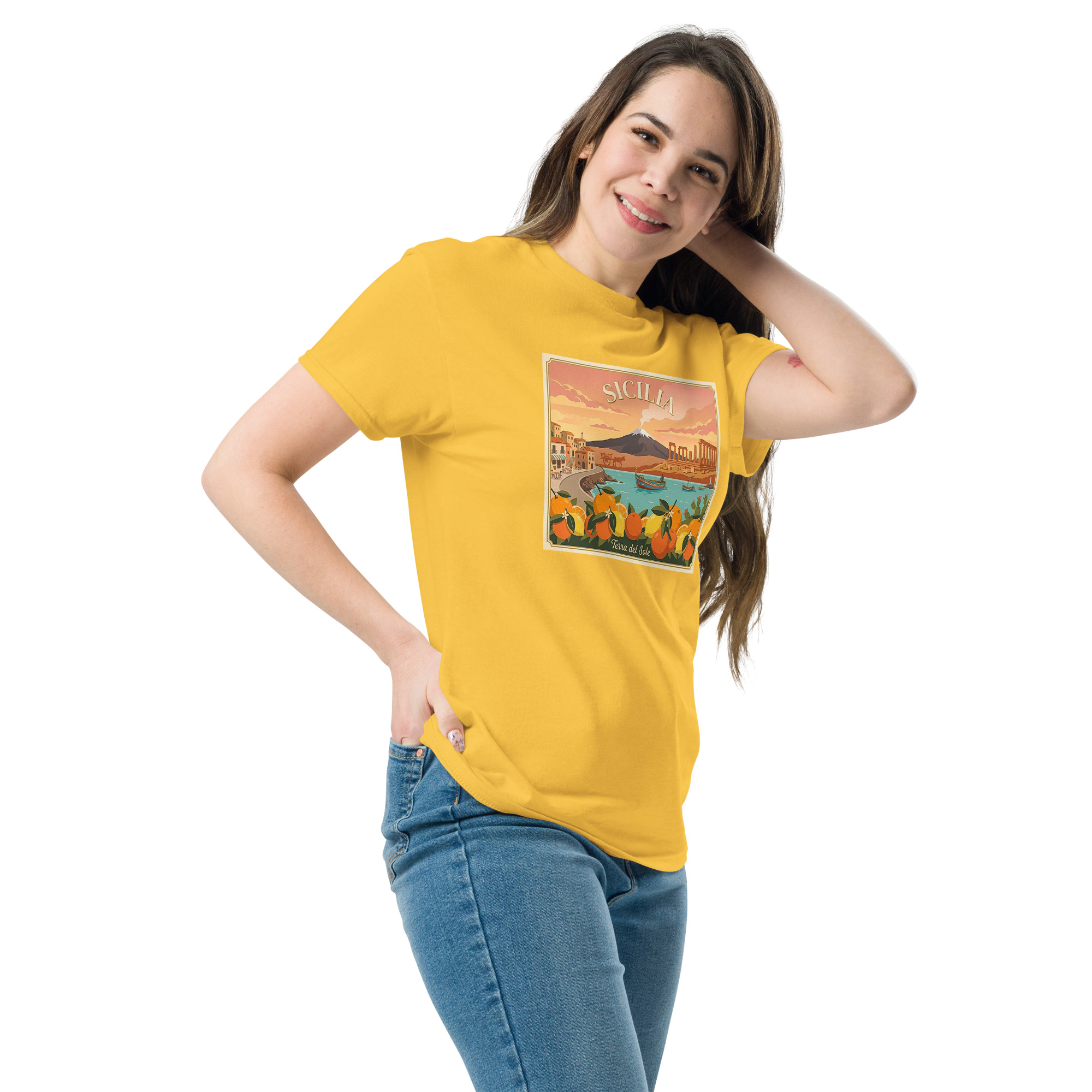 Nessun’altra isola al mondo ha tutto questo nello stesso posto. Il fuoco e l’acqua. L’antico e il selvaggio. Il profumo degli agrumi e il rombo del vulcano. La pietra dei templi e il sale del mare. Questa t-shirt porta addosso quella contraddizione magnifica che solo chi è siciliano può capire davvero.