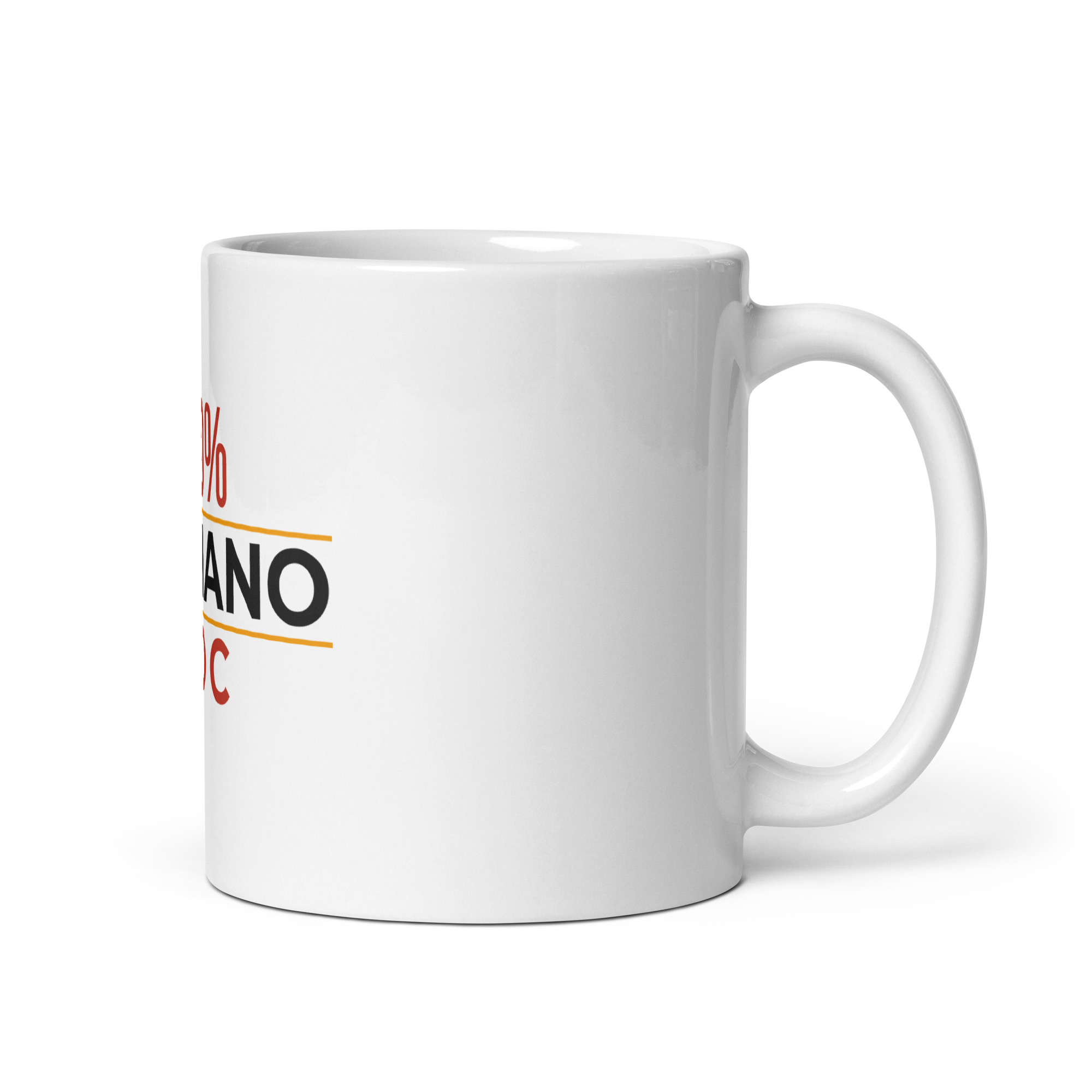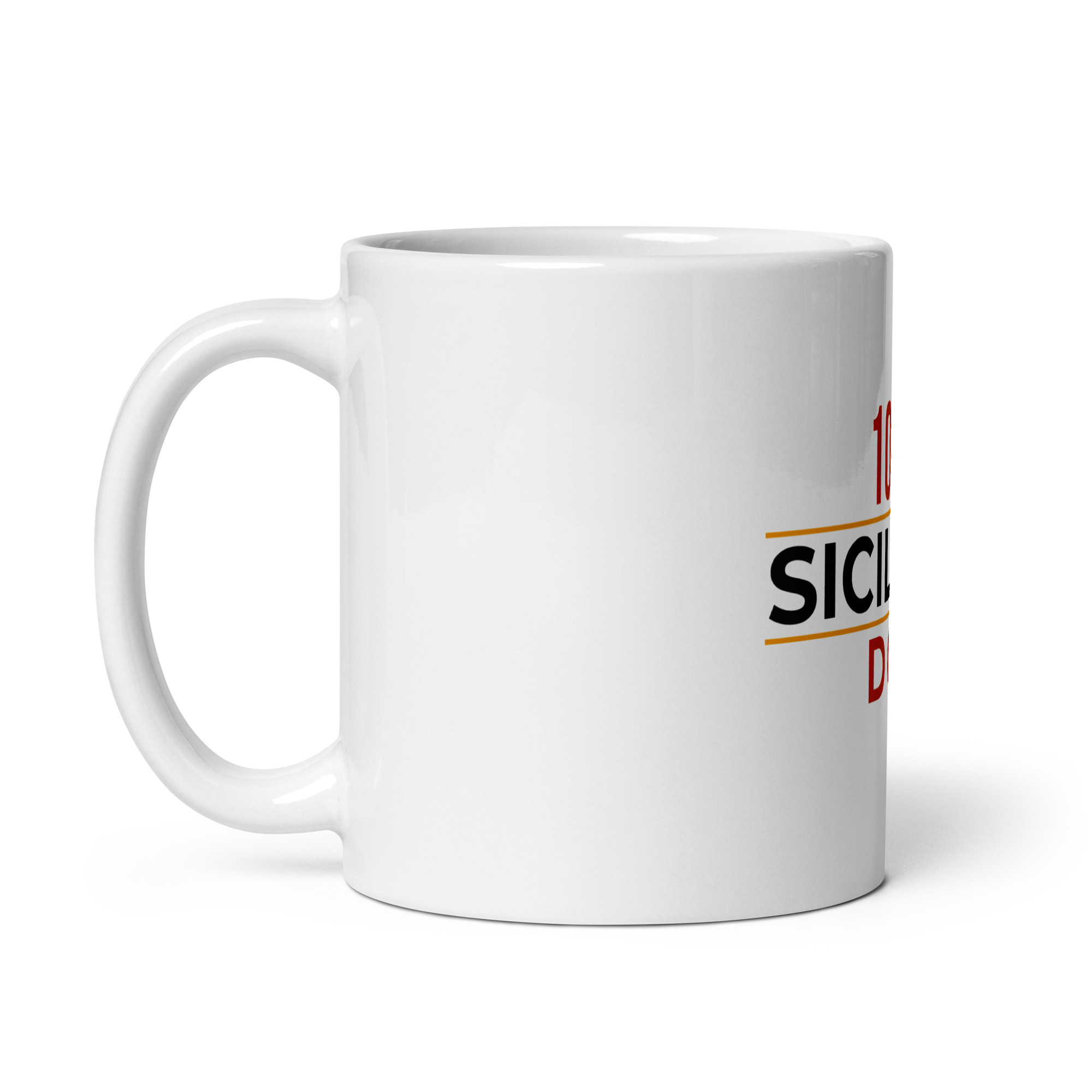 Il bianco puro della ceramica fa risaltare il messaggio come un sigillo ufficiale. La stampa non si graffia col cucchiaio, non si scioglie col calore e non sbiadisce col detersivo. Resta lì, intatta. DOC come il nostro vino, come il nostro olio, come il nostro carattere. Denominazione di Origine Controllata: una certificazione che non si compra al bar, si porta nel sangue.